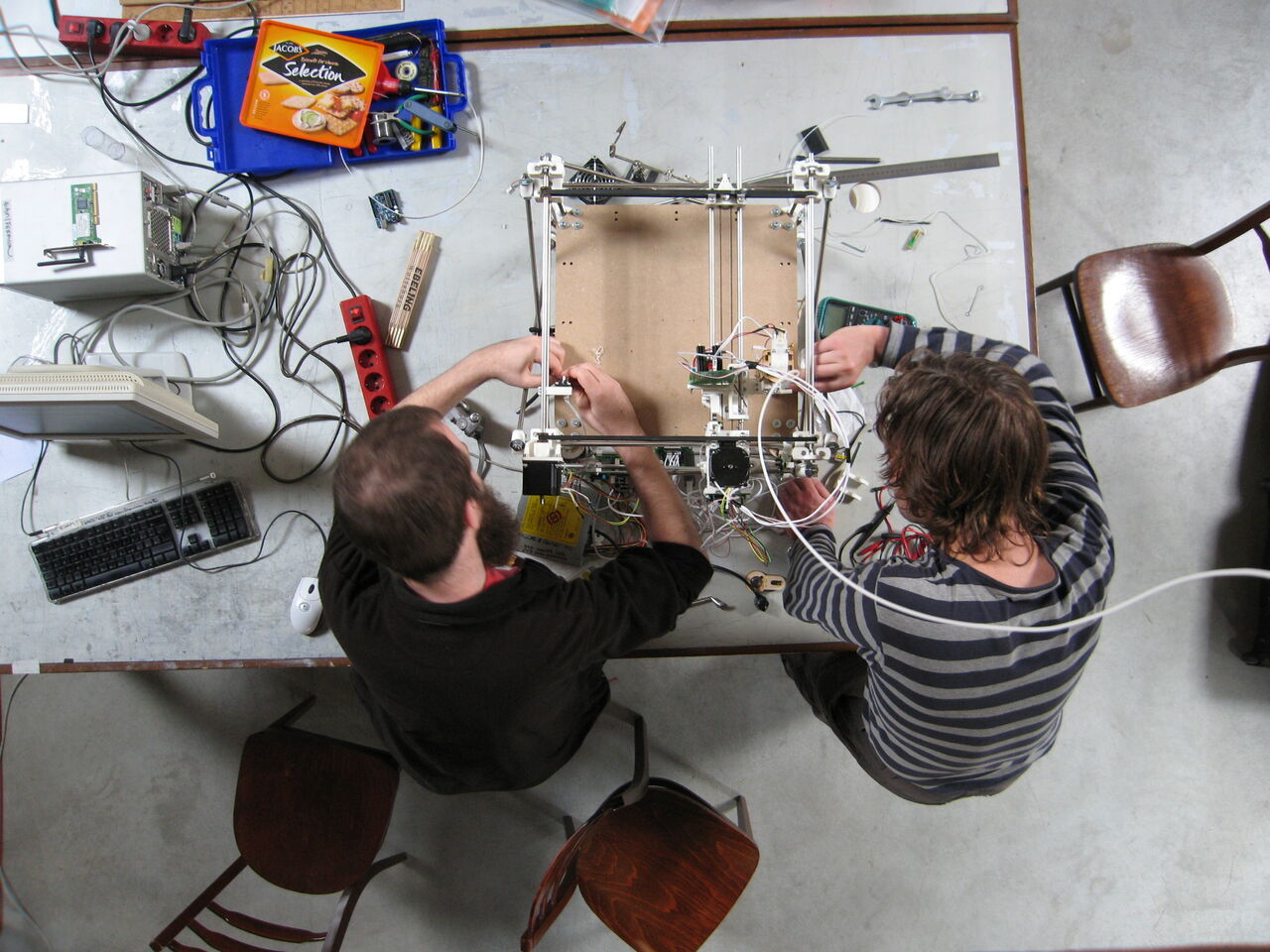 Building a self-replicating 3D printer, Fabbing Open Lab at FoAM in Brussels, 2007–2008